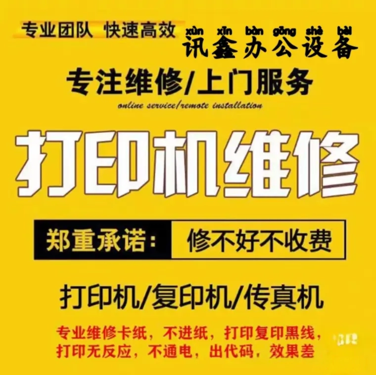 1、办公设备维修。维修丨打印机、传真机、一体机、复印机等各类办公设备维修服务,快速上门检测故障,先报价后维修。